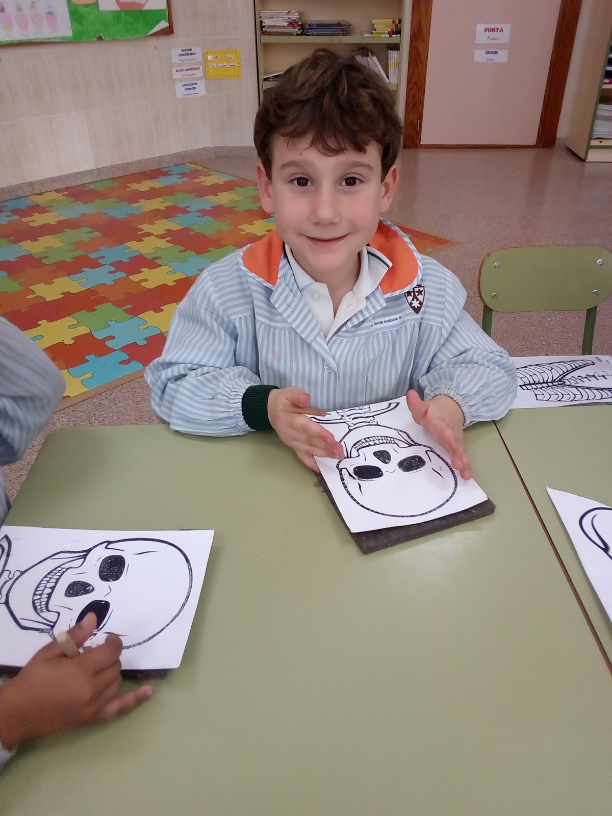 El pasado mes de febrero, aprovechando que trabajamos el proyecto del cuerpo humano, tuvimos la suerte de tener en clase la ayuda de unas mamás para confeccionar nuestro disfraz de esqueleto para Carnaval.